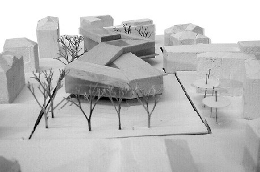 Die städtebauliche Anordnung verknüpft so vormals getrennte Bereiche durch neue Wege- und Raumbeziehungen. Die neu entstehenden öffentlichen Außenräume fließen in das Bibliothekenzentrum, finden dort ihre innenräumliche Fortsetzung und unterstützen dessen einladenden und kommunikativen Charakter.