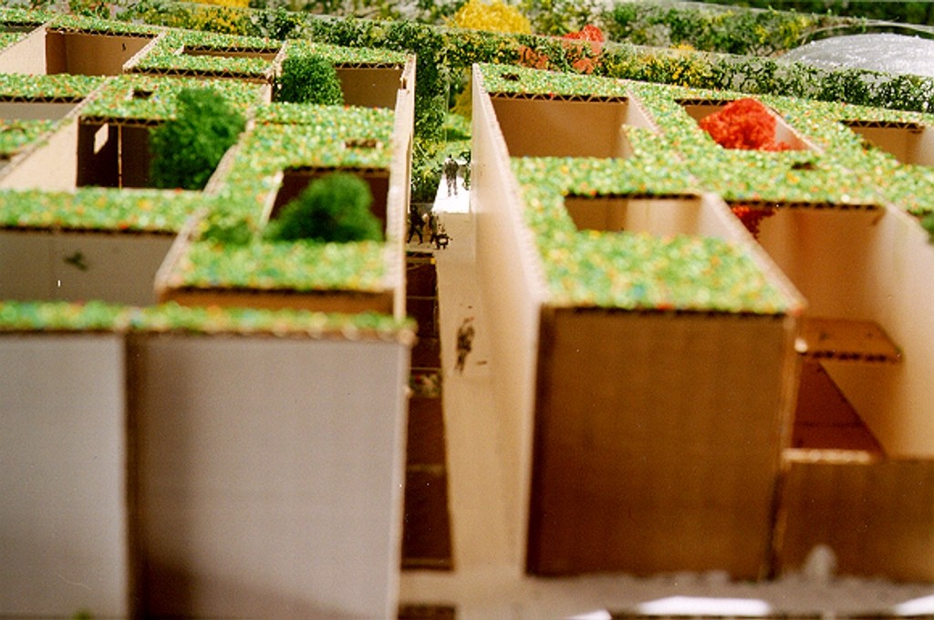 Das Gebaute ist Fragment. Es reagiert auf die Gegebenheiten des Ortes. Der Ort ist Zwischenraum, Reststück, ist selbst Fragment. Das Gebaute sind jene Fragmente, die aus den vorgegeben Grundstückseinteilungen und der geforderten Etappierbarkeit direkt abgeleitet werden. Europaplatz und Europaraum bleiben Zwischenräume in der Stadt. Sie werden nicht zum “klassischen”, räumlich klar definierten und bewußt geplanten Platz. Der öffentliche Europagarten ist Landschaftsfragment. Die Autobahn durchtrennt ihn, wird Bestandteil des Gebauten und somit selbst zum Fragment.