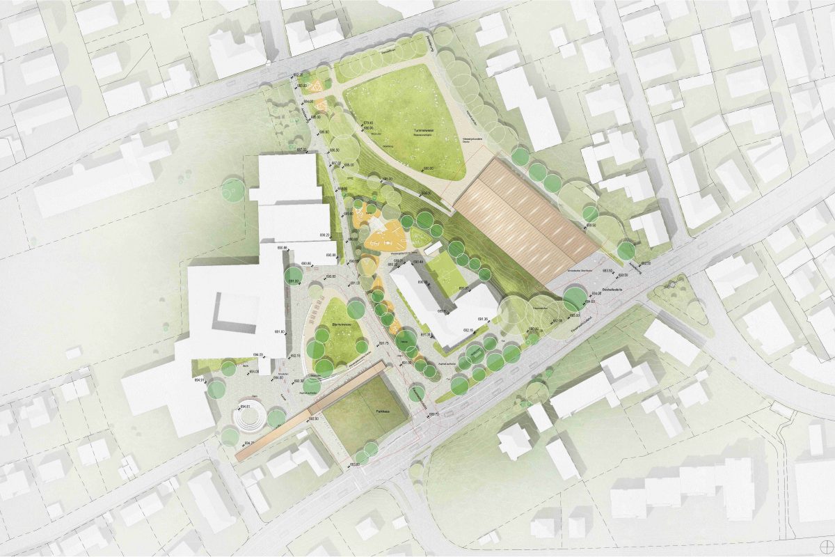 Realisierungswettbewerb nach RPW 2013 – Neubau Dreifachsporthalle mit Parkhaus, Lindauer Straße, Stadt Kempten mit Ideenteil zur Umgestaltung des angrenzenden Kindergartenbereichs und Neugestaltung des Schulpausenhofes