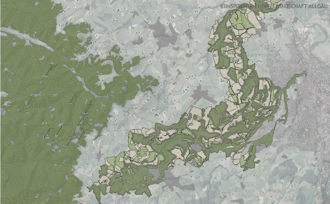 Eine Stärkung des Raumerlebens vorhandener und typischer Landschaftsstrukturen hilft hierbei. Räumliche Situationen wie das Allgäuer Tor an einer Engstelle der Endmoränen könnten durch die bewusste Anordnung von Energieinfrastrukturen überhöht und deutlicher gemacht werden.