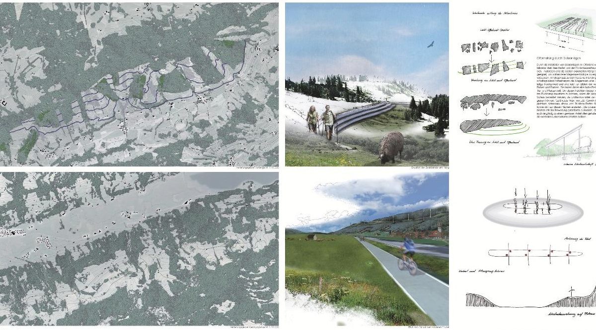 Zum ersten Mal wird eine Energielandschaft Allgäu gezeigt, die nicht erlitten, sondern gestaltet wird. Solaranlagen werden nicht mehr mechanisch in Korridore entlang der Straßen- und Bahntrassen gezwängt, Windenergieanlagen nicht mehr möglichst fernab der Alpen konzentriert. Die Entwürfe verstecken nichts, noch versuchen sie zu verdrängen oder zu verbergen. Sie fügen ein.