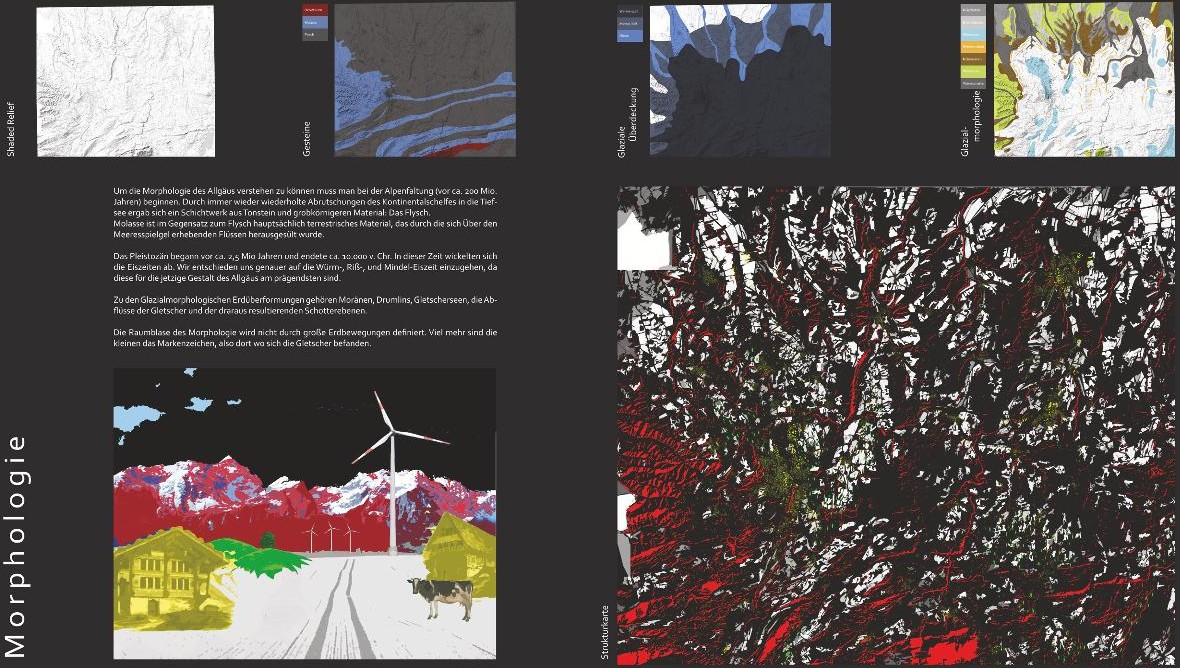 Die bestehende Landschaft selbst ist Strukturvorgabe, aber auch Ideengeber dieser Integration. Dabei wird deutlich, dass die Landschaft des Allgäu heute mitnichten eine harmonische Ganzheit darstellt. Vielmehr haben die Studierenden in ihren ausführlichen Analysen erkannt, dass das Allgäu in verschiedene Teile zerfällt. Gerade in dem Hinzutreten der neuen Elemente in der Kulturlandschaft sehen sie jedoch die Chance, neue Zusammenhänge, gar eine neue Ganzheitlichkeit, zu erzeugen. Diese Ganzheitlichkeit des Allgäus wird aber nie durch Abgrenzung nach Außen, sondern durch Konsistenz nach Innen formuliert. Obschon also viele der Entwürfe mit Grenzen arbeiten – kulturellen wie natürlichen, technischen wie morphologischen, fällt doch auf, dass ihre Ideen landschaftlich weitertragen. Das, was hier für eine besondere Landschaft entworfen wurde, vermittelt Vorbilder für die Integration erneuerbarer Energien in Landschaft weit über das Allgäu hinaus.